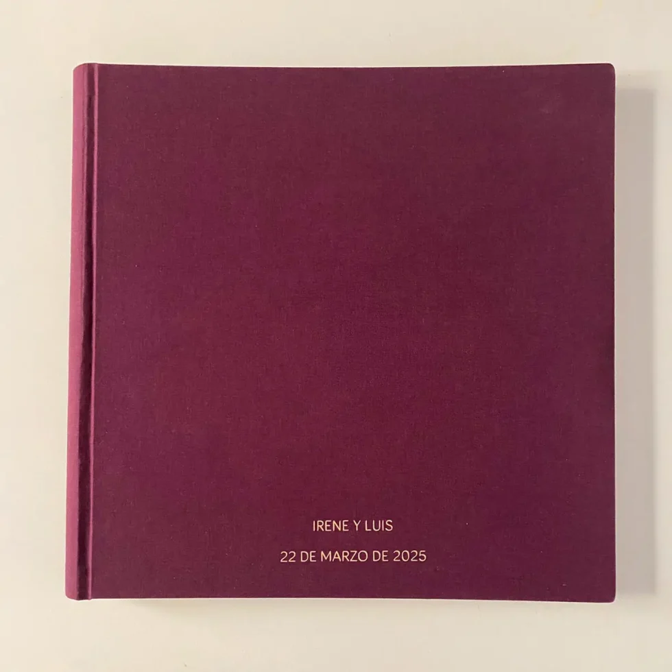 Álbum de fotos de 40 hojas con separaciones de seda. Perfecto para tus fotos de verano, recuerdos de bodas o cualquier viaje. Medidas: 30×30 cm. Nº de hojas: 40 Color: Granate.
